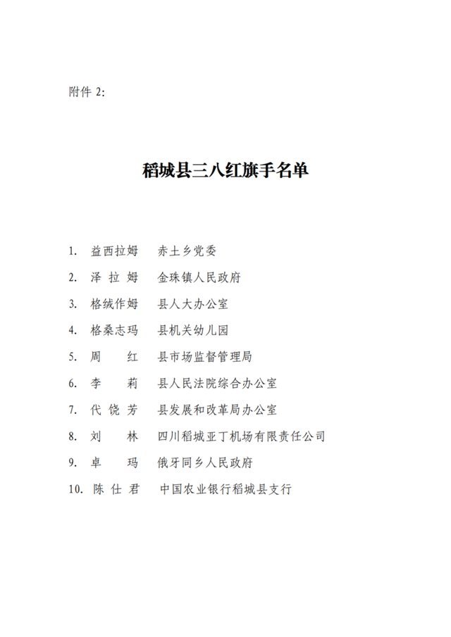 稻城县三八红旗手名单10人