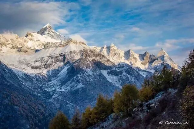 洁白的雪山、蔚蓝的天空